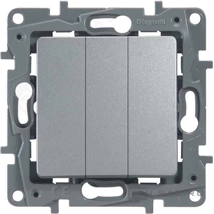 Выключатель Etika, трехклавишный, без подсветки, алюминий, 543 Р